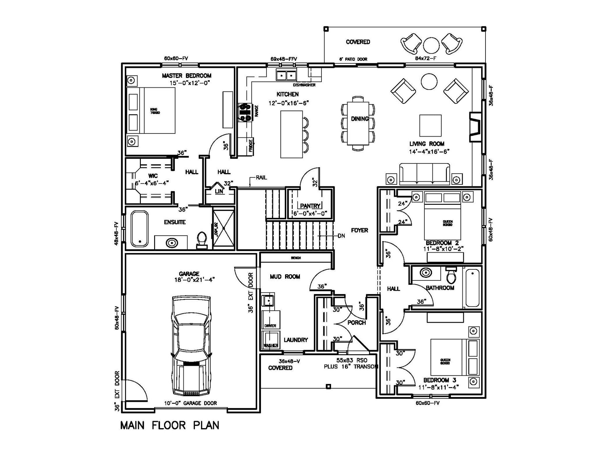 The Seal Cove plan (B3-1836G-50′×48′) is a versatile 3-bedroom, 2-bath bungalow with 1,740 sq ft of main-floor living space plus a full undeveloped basement for future expansion. Designed with functionality and comfort in mind, this layout features an open-concept kitchen, dining, and living area, a primary suite with ensuite bath, and two additional bedrooms.